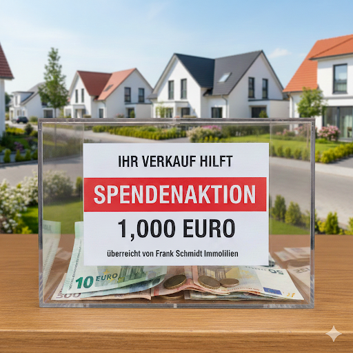 Mit der Aktion „Ihr Verkauf hilft“ verbindet Frank Schmidt Immobilien den Immobilienverkauf mit sozialem Engagement in der Region. Für jede erfolgreich verkaufte Immobilie spendet das Maklerbüro 1.000 Euro für einen guten Zweck – ausgewählt vom jeweiligen Verkäufer.